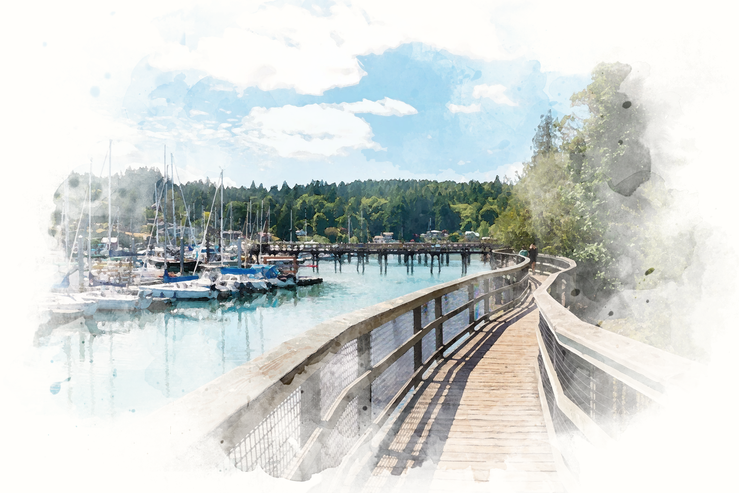 The Corner sits at the entrance to Bainbridge Island, directly across from the Bainbridge Island Museum of Art and just steps from the Seattle ferry. It is the first impression for visitors arriving on foot, bike, or by car, and it’s one of the last images they take with them when they leave.
